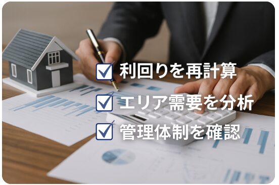 特に重要なのは、利回りの再計算・融資条件の見極め・出口戦略の明確化です。これらを意識することで、空室リスクや資金繰りの悪化を防ぎ、安定したキャッシュフローを維持できます。
