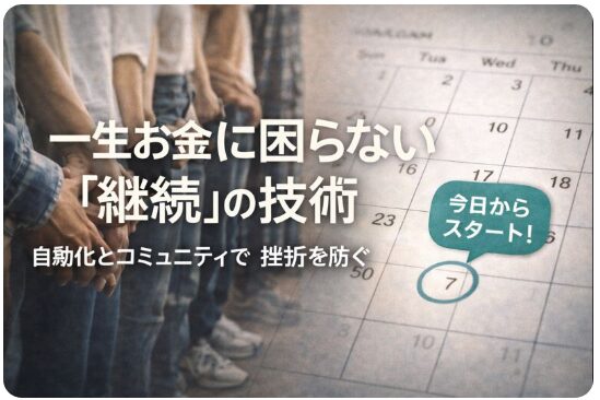 お金の勉強と実践を始めても、多くの人が数ヶ月でやめてしまいます。その理由は、効果が目に見えて現れるまでに時間がかかるからです。資産形成は短距離走ではなく、数十年続くマラソンのようなものです。そのため、「頑張らなくても続く仕組み」を作ることと、他人と比較して焦らないメンタルが、成功するためには不可欠です。