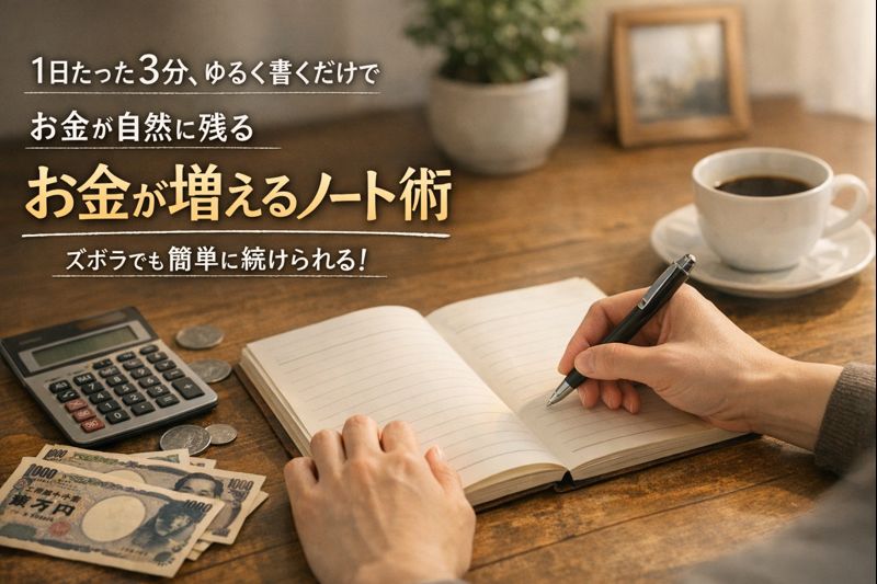 1日たった3分、ゆるく書くだけでお金が自然に残る「お金が増えるノート術」を紹介します。