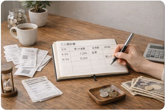 ノートを1冊用意し、「日付・金額・カテゴリ」の3点だけを書いてみてください。