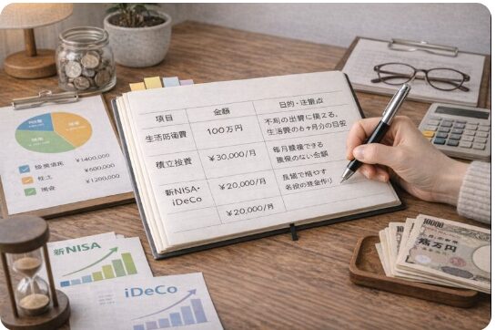 - 長期で“増やす”パート:新NISA・iDeCo・貯蓄を家計ノートで習慣化するライフプラン術