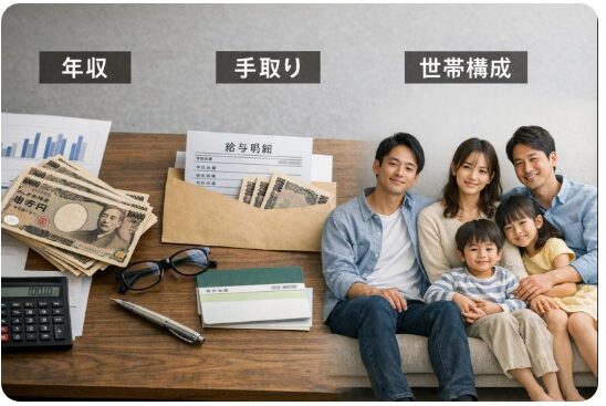 そこで大切なのが、年収 → 手取り → 世帯構成という流れで“現実的なゴール”を逆算する視点なんですね。