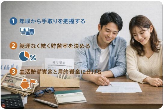 - 年収ではなく「手取り」から貯蓄目標を逆算する考え方
