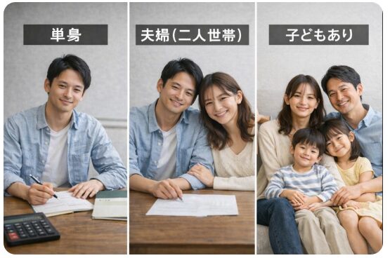 単身・夫婦・子どもありで必要な生活費や貯蓄優先度は変わります。