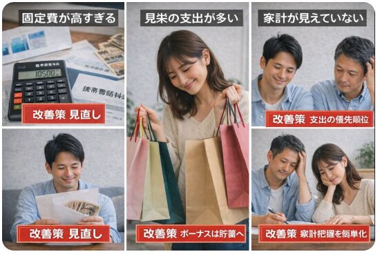 8-1. 貯金が増えない原因:固定費過多・見栄支出・ボーナス依存・家計の不透明化