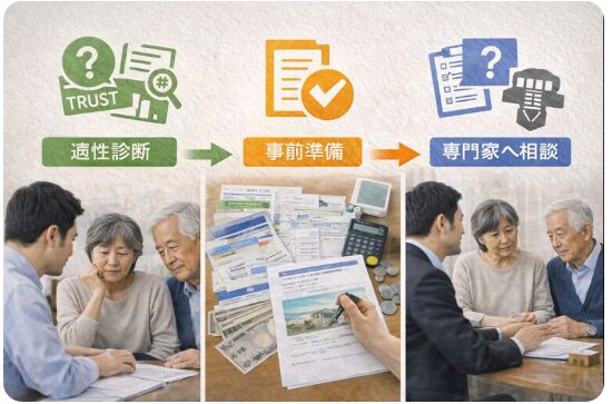 家族信託を検討する際、「何から準備すればいいの?」「専門家に何を聞けばいい?」と迷ってしまいますよね。
