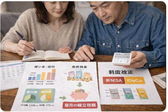 特に重要なのは、生活防衛費を最優先で確保し、残りを目的別に分けて自動化すること。これを実践すれば、相場や感情に振り回されず、家計が安定します。また、教育費・住宅・老後でリスク許容度を変え、新NISAやiDeCoを正しく使い分けることで、効率と安全性を両立できます。