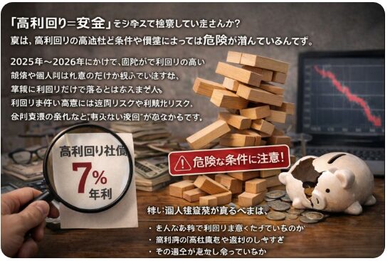 2025〜2026年の投資環境では、利回りの高さを売りにする商品が増えていますが、