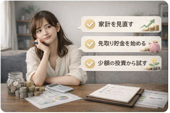 9-1:今すぐ始める3つ:口座分けで先取り/固定費点検/新NISAの積立設定