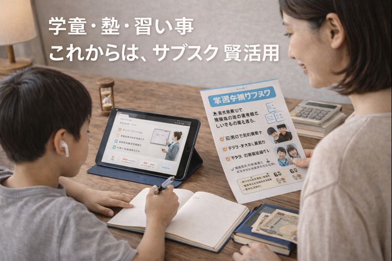 学童・塾・習い事の教育費は、月謝だけを見ていると、気づかないうちに家計を圧迫する「見えないコスト」が積み重なりがちです。本記事では、その正体を整理し、サブスク型サービスも含めてコスパで比較・最適化する考え方をお伝えしてきました。