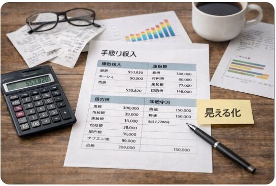 まずは、手取り収入・固定費・変動費・年間支出を1枚のシートにまとめて、「見える化」することから始めましょう。