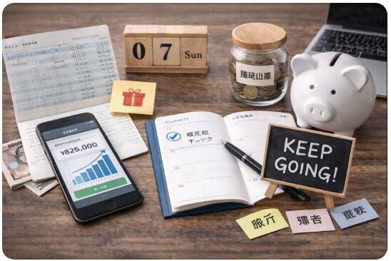 さらに、固定費の見直しや臨時出費の先取りを組み合わせることで、スピードと安定感は一気に高まります。