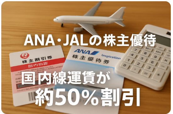 ANAやJALの「株主優待」と聞くと、飛行機代を安くできる特典というイメージがありますよね。実際、両社の優待を利用すると国内線の正規運賃が約50%前後割引され、旅行や出張のコスト削減に大きな効果を発揮します。
