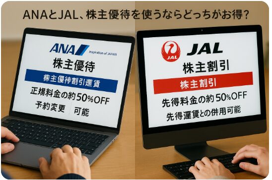 ただし、ANAとJALでは優待割引率や使える路線、予約ルールに違いがあります。つまり「どちらの株を買うべきか」は利用スタイルによって変わるんです。