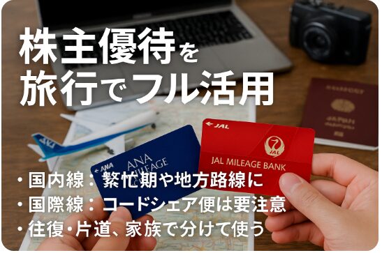 特に、繁忙期や直前予約に柔軟に対応できることは他の割引運賃にはない強みです。さらに、家族利用や長期保有による投資リターンとの組み合わせで、単なる「割引チケット」以上の価値を得られるのが株主優待の魅力ですね。
