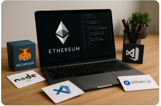 開発に必要なツールは、Node.jsやMetaMask、VS Code、ethers.jsなど。さらに、テストネットやノード接続のためにAlchemyやInfuraといったサービスを利用すれば、実際のブロックチェーンと同じ環境で開発可能です。