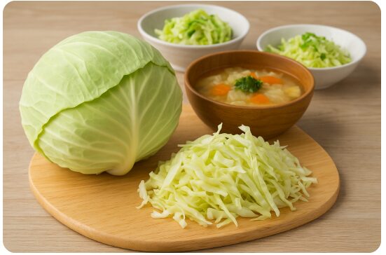 キャベツには栄養がたっぷり含まれています。特に ビタミンCと食物繊維 が豊富で、整腸作用や美容効果も期待できます。