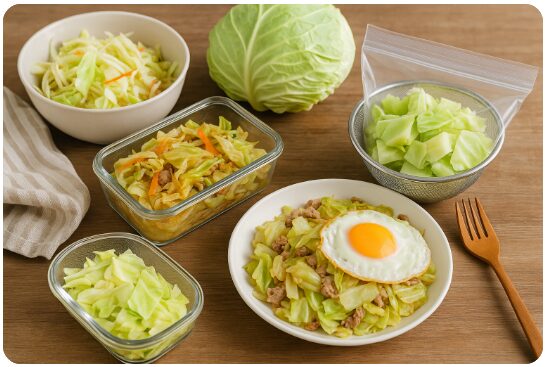 つまり、キャベツを「作り置き・冷凍・一人暮らし向け」にアレンジすることで、毎日の食事がラクに、しかも節約になるというわけですね!