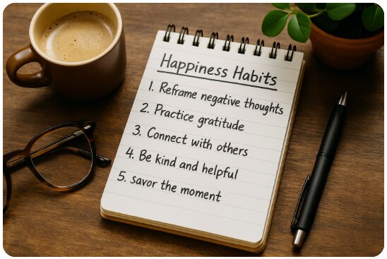 つまり、幸せは「偶然」ではなく、科学と習慣でデザインできるものです。今日から始められる小さな一歩が、未来の大きな幸福につながります。