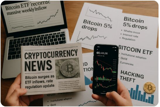 仮想通貨市場は、ニュースひとつで価格が大きく動くという特徴がありますよね。特にビットコインは、ETFへの資金流入や米国金利の発表、規制強化の報道、大口投資家の資金移動、さらにはハッキング事件など、あらゆるニュースが相場に直結します。