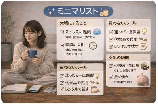 だからこの記事では、ミニマリストの特徴とお金の使い方の基準をやさしく整理します。