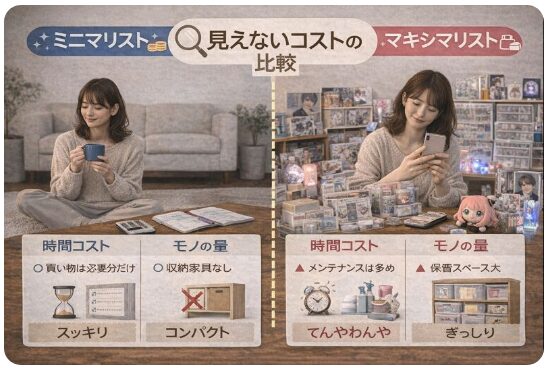 ミニマリストとマキシマリスト、どちらの暮らしが「お金も時間も満足度も高いの?」と気になっていませんか?