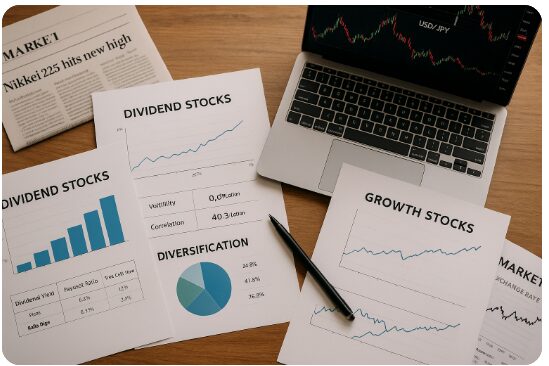 さらに、投資全体のリスクとリターンを最適化するにはボラティリティ・相関関係・分散投資を意識することが欠かせません。異なる業種や市場に分散することで、安定した運用が可能になります。つまり、日本株は「安定」と「成長」の両方を取り込める投資先だということです。