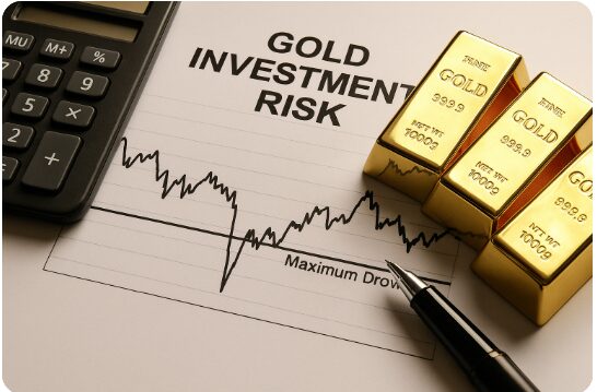 実は、金の値動きはボラティリティ(変動率)が高く、過去の相場でも**最大ドローダウン(資産の下落幅)**が投資家を苦しめた局面がありました。そこで、ポートフォリオ全体における適切な配分や、定期的なリバランスの基準を設けることが重要になります。