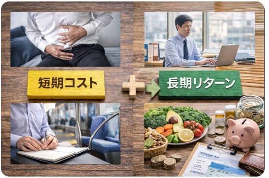 健康投資の考え方:短期コスト vs 長期リターン(医療費・時間・収入)