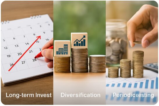 資産形成で成功するために欠かせないのが、長期・分散・積立の3つの基本です。これらを実践することで、相場の上下に振り回されず、安定して資産を増やす仕組みを作ることができます。