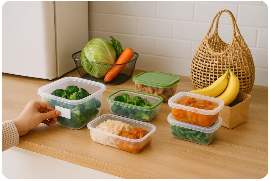 - 作り置き献立を週末に準備(主菜×副菜×スープの組み合わせ)