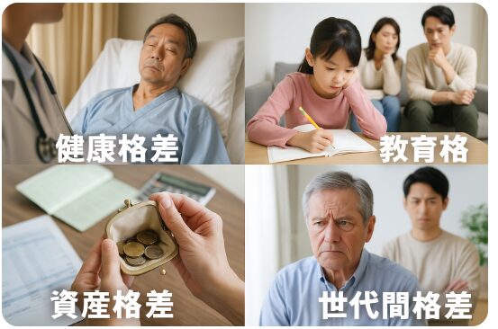 日本の格差社会は、収入・教育・健康・情報など、あらゆる分野で広がり続けています。