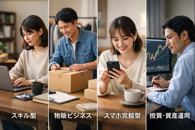 スキル型・物販・スマホ完結型・投資系など、性質がまったく異なる選択肢があります。
