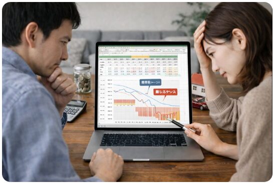 - 厳しめシミュレーションでリスク管理(インフレ・金利上昇・収入減・万が一)