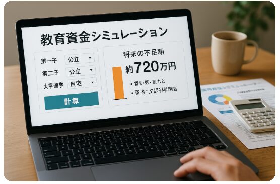 シミュレーションを行えば、子どもの進路(公立か私立か、自宅通学か下宿か)によって将来どのくらいの資金が不足するかが具体的に見えてきます。学費だけでなく、塾や受験費などの「見落としがちな出費」も加味することが重要です。