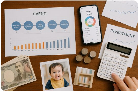 教育資金は20年近い長期戦です。だからこそ、イベント年表やキャッシュフロー表で見える化するのが効果的。