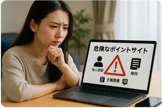 「ポイ活は稼げると聞くけど、危険なサイトもあるって本当?」と不安に感じる人も多いですよね。