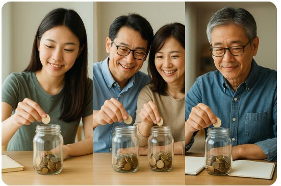 定額貯金は「どの世代でどのくらい貯めるか」によって効果が大きく変わります。実は、20代・30〜40代・50代以降では貯金の目的や毎月の目安額が全く違うんですよね。例えば20代なら「貯金の習慣づけ」や「一人暮らしの生活防衛資金」が中心ですが、30〜40代になると「教育費」や「住宅購入資金」など大きな支出を意識した貯金が求められます。