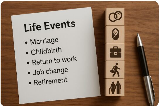保険は一度加入すれば安心、と思われがちですが、実際にはライフステージの変化に合わせて定期的に見直すことが必要です。特に**結婚や出産、育休復帰、転職、定年退職、子どもの独立**といった人生の節目では、必要な保障額や家計への影響が大きく変わります。