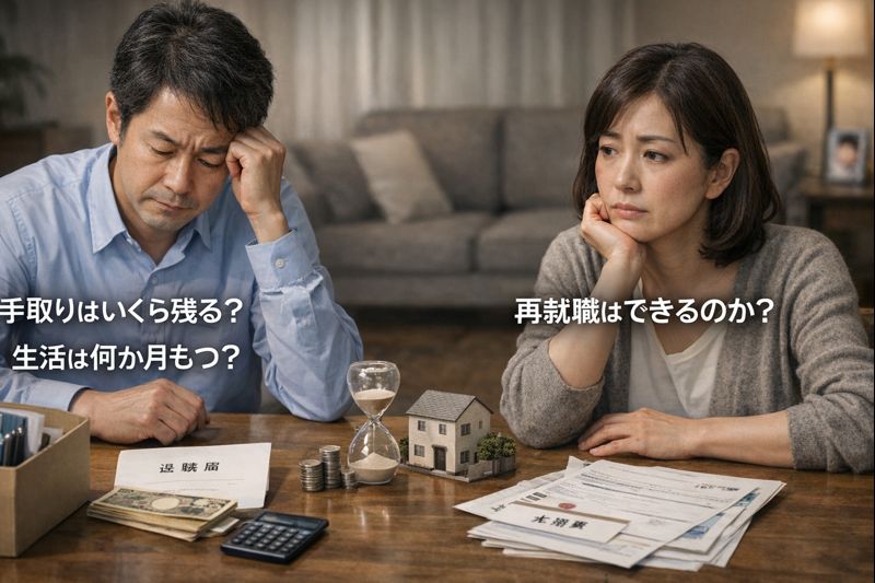 退職金や割増金の手取り、失業保険(2025年改正を含む)、年金・社会保険の固定費、再就職の現実ライン。これらを整理すれば、将来の不安は大きく減らせます。