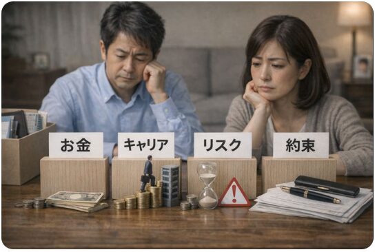 さらに見落としがちなのが、合意書の内容や退職後の配置・評価、そしてメンタル面の影響です。「残った場合に失うもの」「辞めた場合に背負うもの」を先に可視化することで、判断の軸は一気にクリアになります。