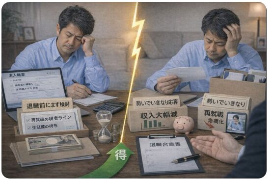 例えば、退職前に再就職の現実ラインを把握し、生活費の持ちを計算していた人は「思ったより落ち着いて動けた」と感じやすい一方、勢いで応募した人は「想定外の収入減」「再就職が長期化して詰んだ」と後悔しがちです。