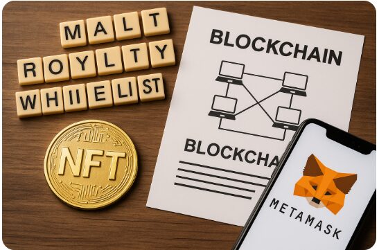 さらに、NFTを触る上で必須となる用語もあります。たとえば「ミント(発行)」「ホワイトリスト(優先購入権)」「ロイヤリティ(転売時の還元)」、そして代表的なウォレットである「MetaMask」などです。ここが重要! 基本用語を理解しておくことで、NFT取引がぐっとスムーズになります。