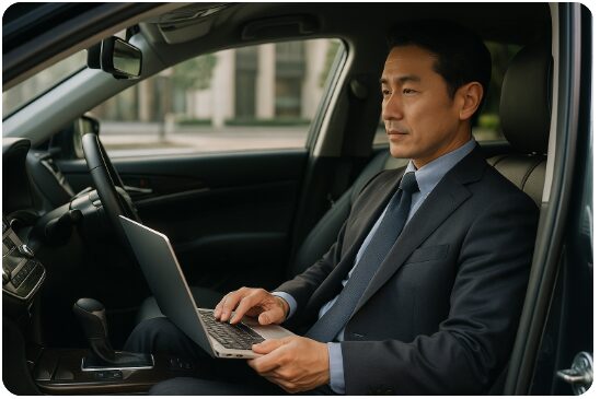 - **運転手付き(専属・外部委託)**で移動中に仕事をする