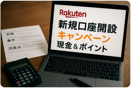 楽天証券をこれから利用する人にとって、新規登録や口座開設キャンペーンの活用は見逃せないポイントですよね。特に証券総合口座を開設すると、現金やポイントがもらえる特典があり、家族や未成年口座でも条件を満たせば対象になる場合があります。法人の場合は審査が必要ですが、事前に確認しておけばスムーズです。