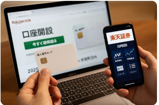実は、楽天証券の口座開設はとても簡単なんです。スマホと本人確認書類があれば、最短でその日から始められます。