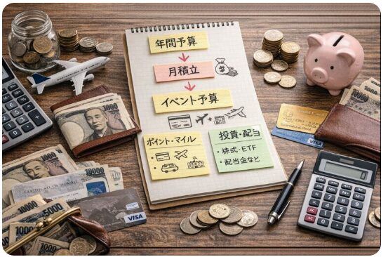 例えば、年間の旅費を予算として明確化し、毎月積立やポイント活用を仕組み化すると、無駄な支出を減らして投資原資を残せるようになります。