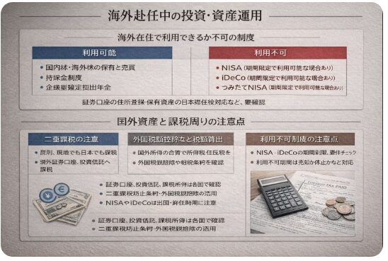 5. 投資商品・資産運用の扱い:海外在住で「使える制度/止まる制度」を分けて判断