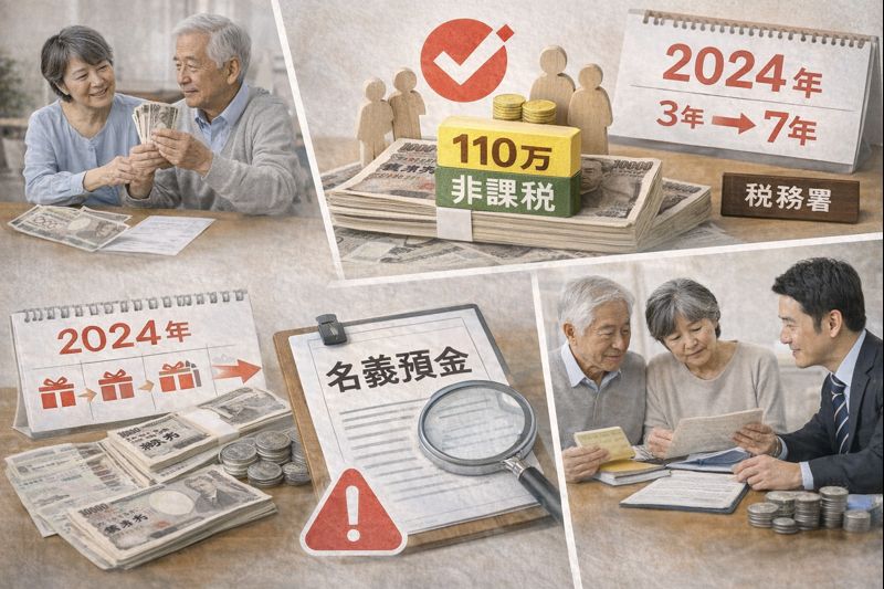 特に2024年(令和6年)の税制改正以降は、生前贈与の持ち戻し期間が3年から7年へ延長され、これまで通りの感覚で贈与を続けると「贈与しすぎ」になるリスクが高まっています。名義預金や連年贈与と判定されると、非課税のつもりが相続税の対象になることもあるんです。