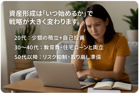 資産形成は「いつ始めるか」で戦略が大きく変わります。